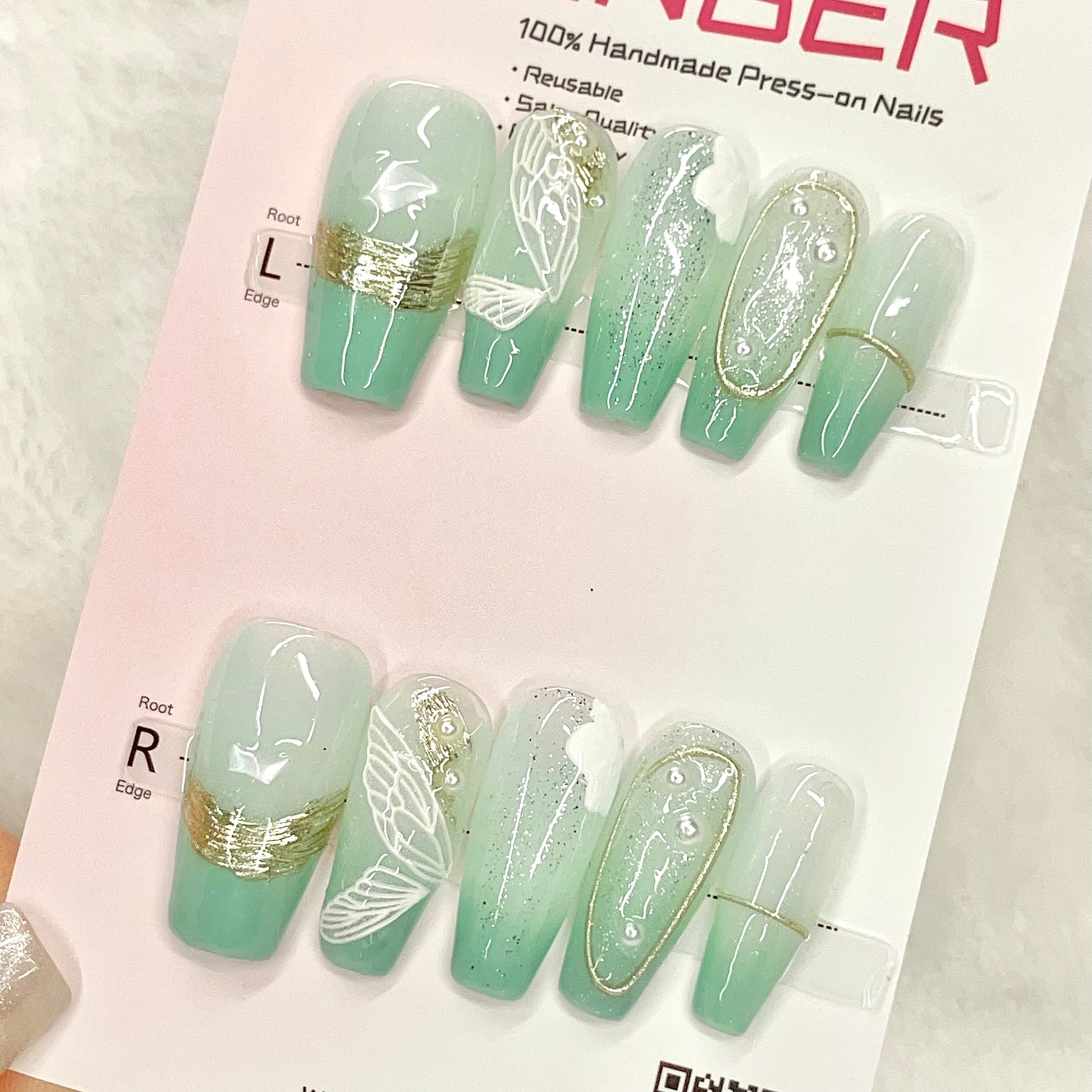Handcrafted Long Blue Press-On Nails for Calm Vibes
