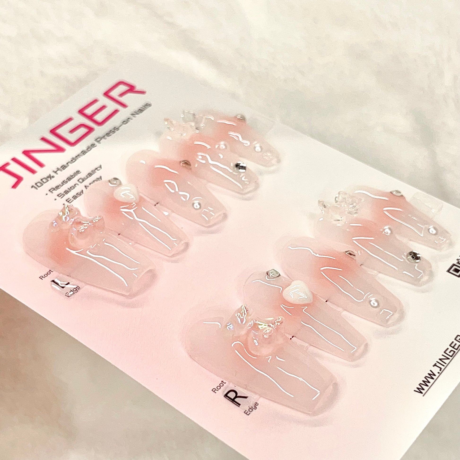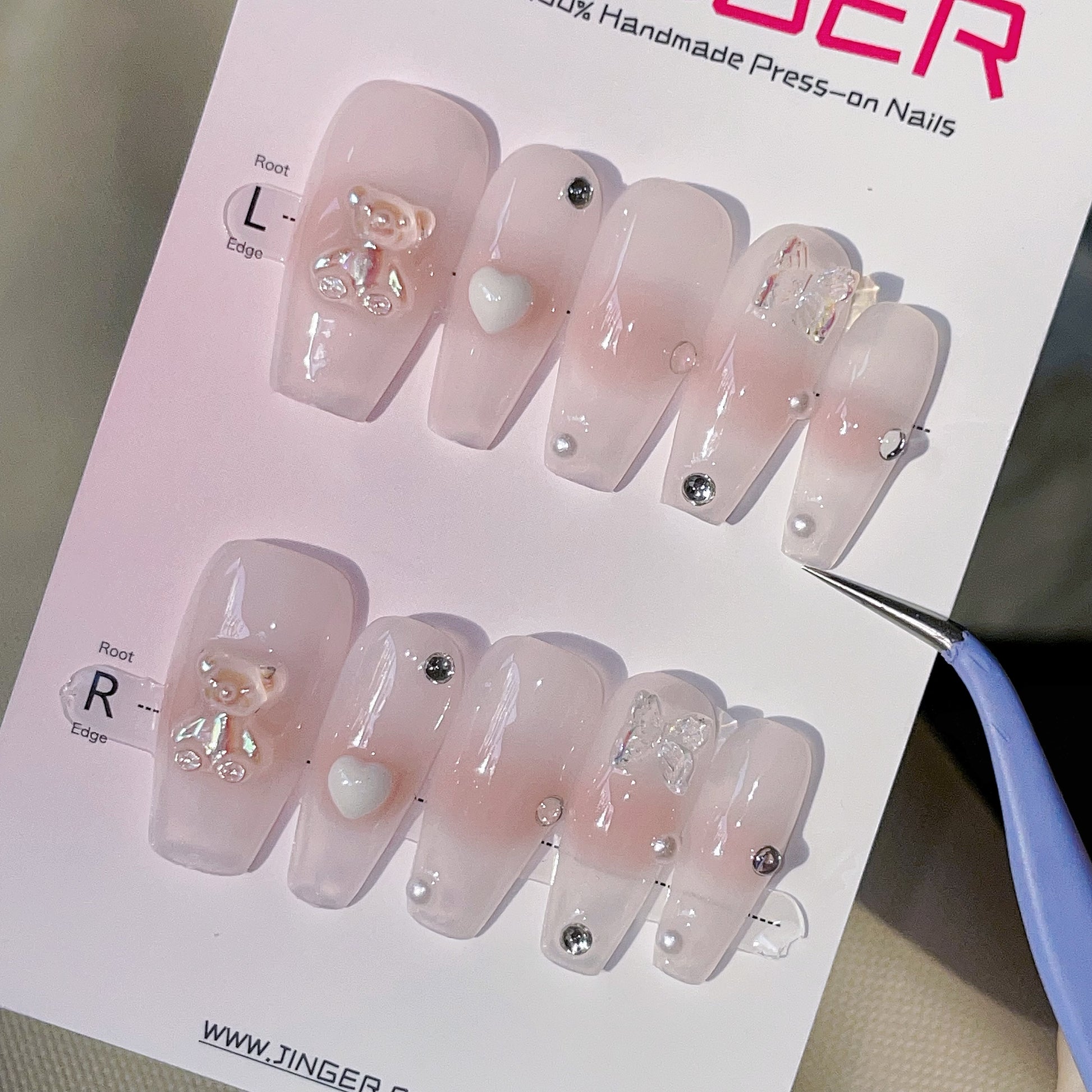 Luxurious Long Pink Press-On Nail Art.