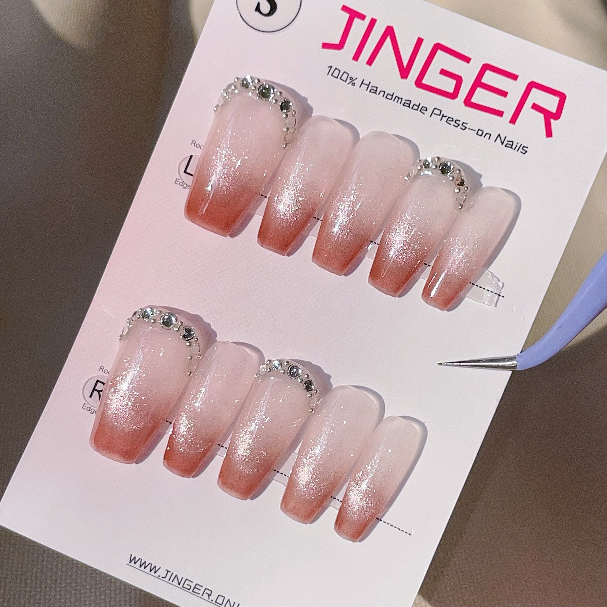 Long Handmade 3D Pink Cat-Eye Press-On Nails for the Modern Woman.