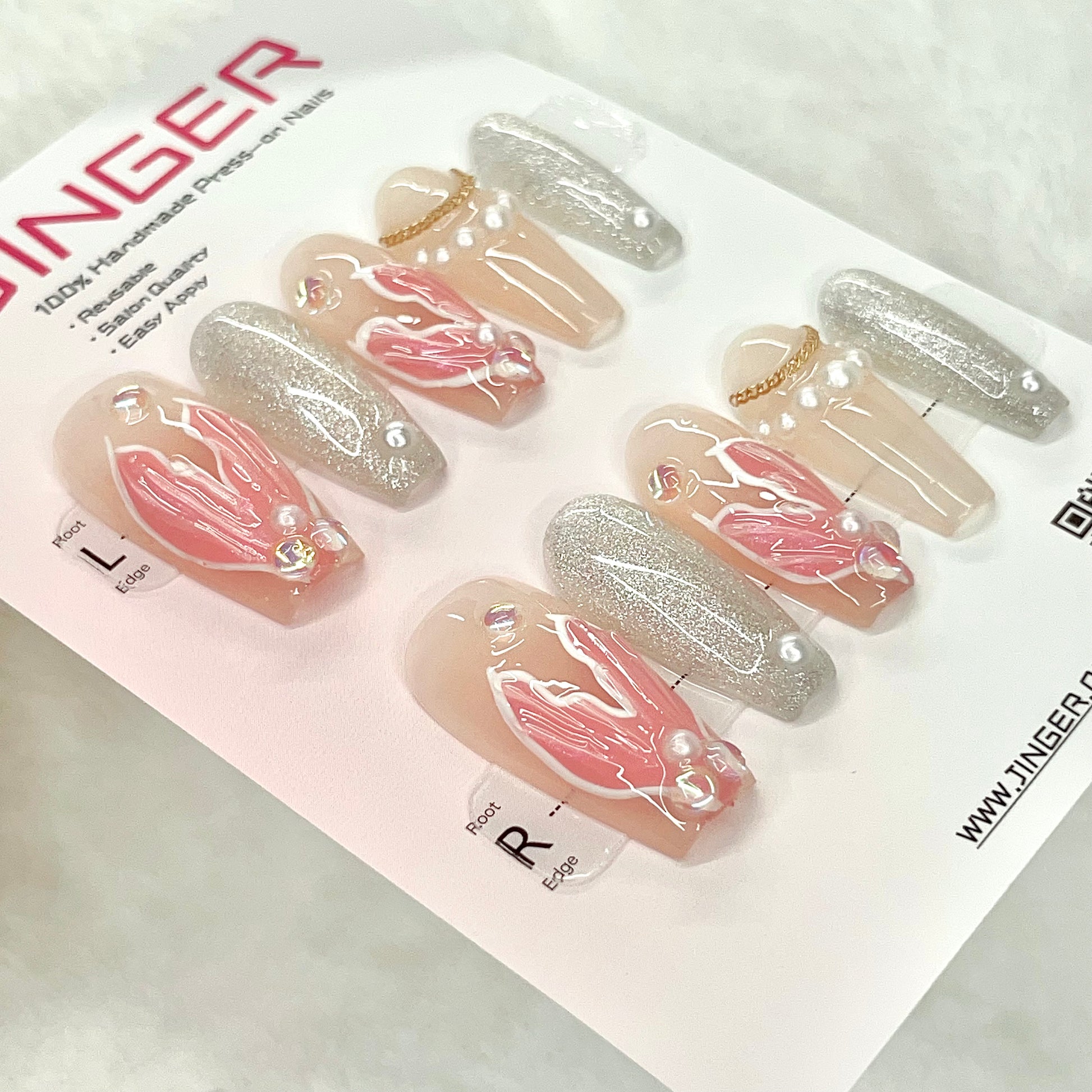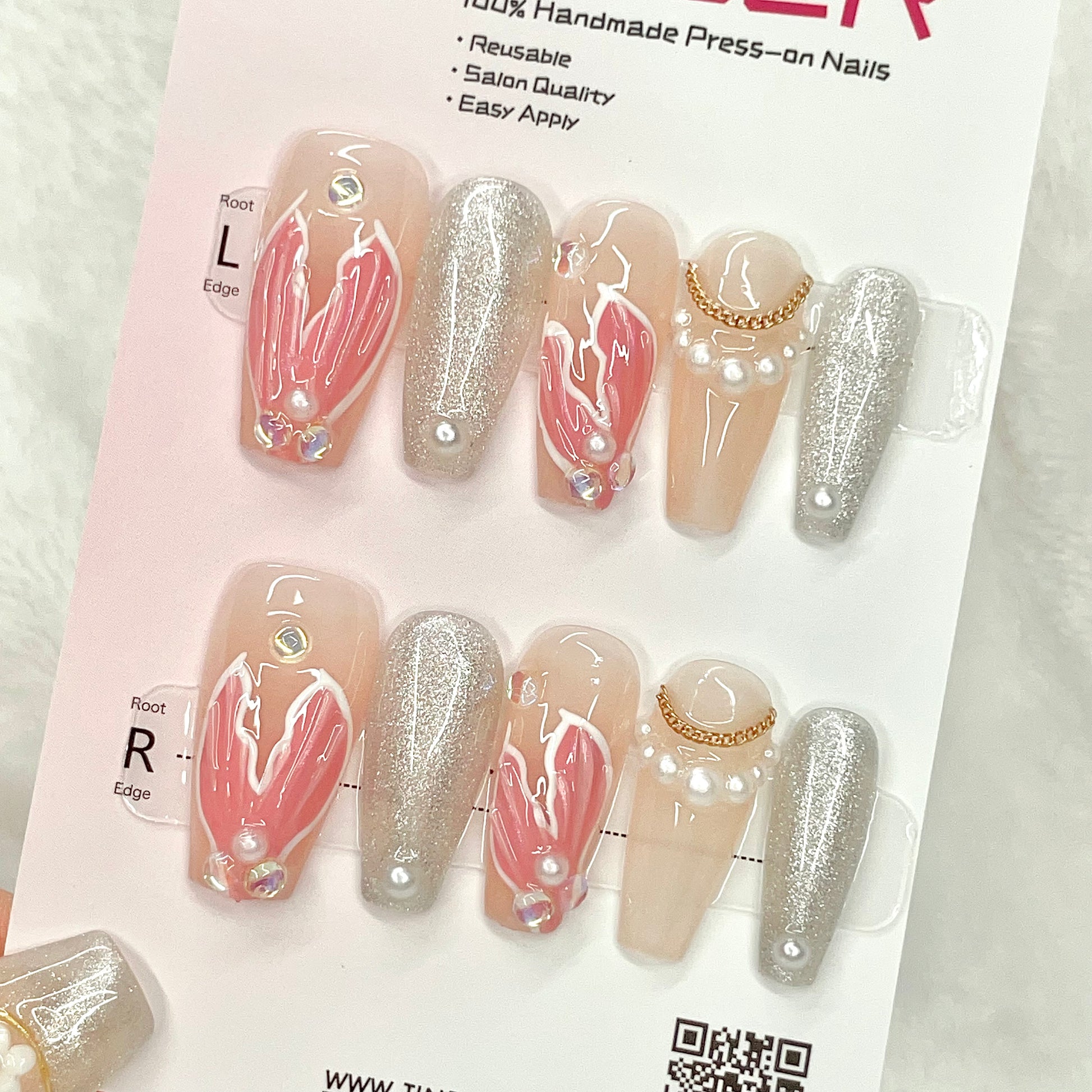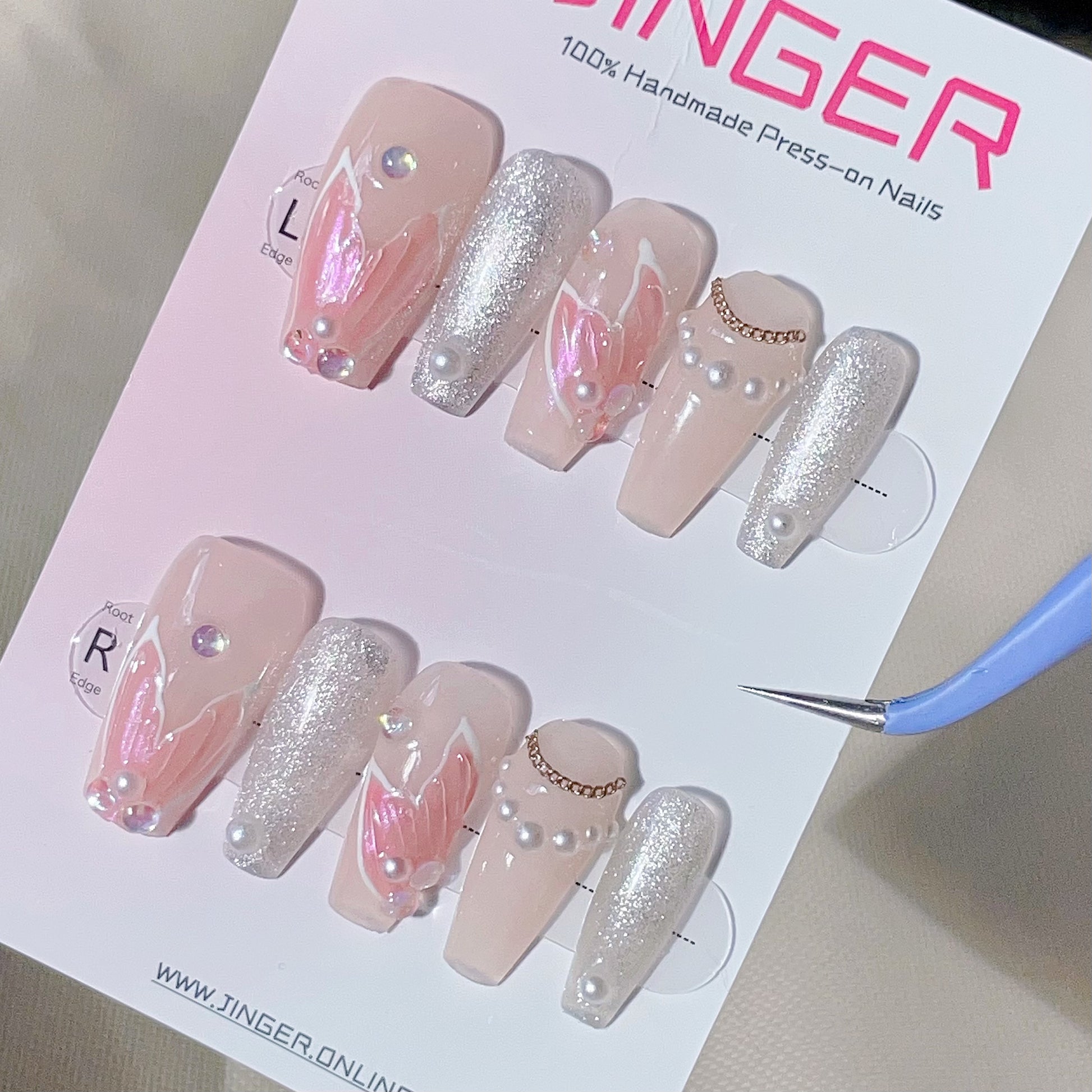 Mermaid Pink Long Press-On Nails Handmade for the Ultimate Diva.