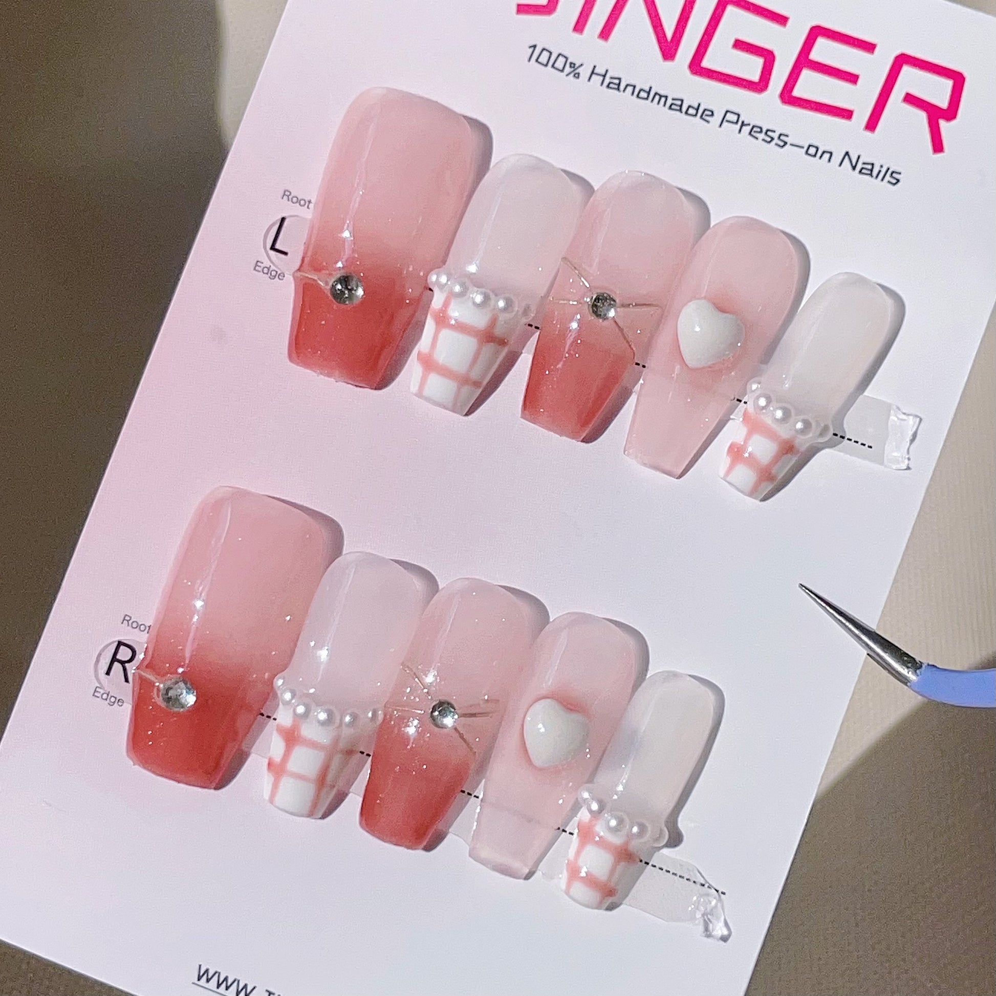 Pink Long Handmade Press-On Nails for Trendsetters.