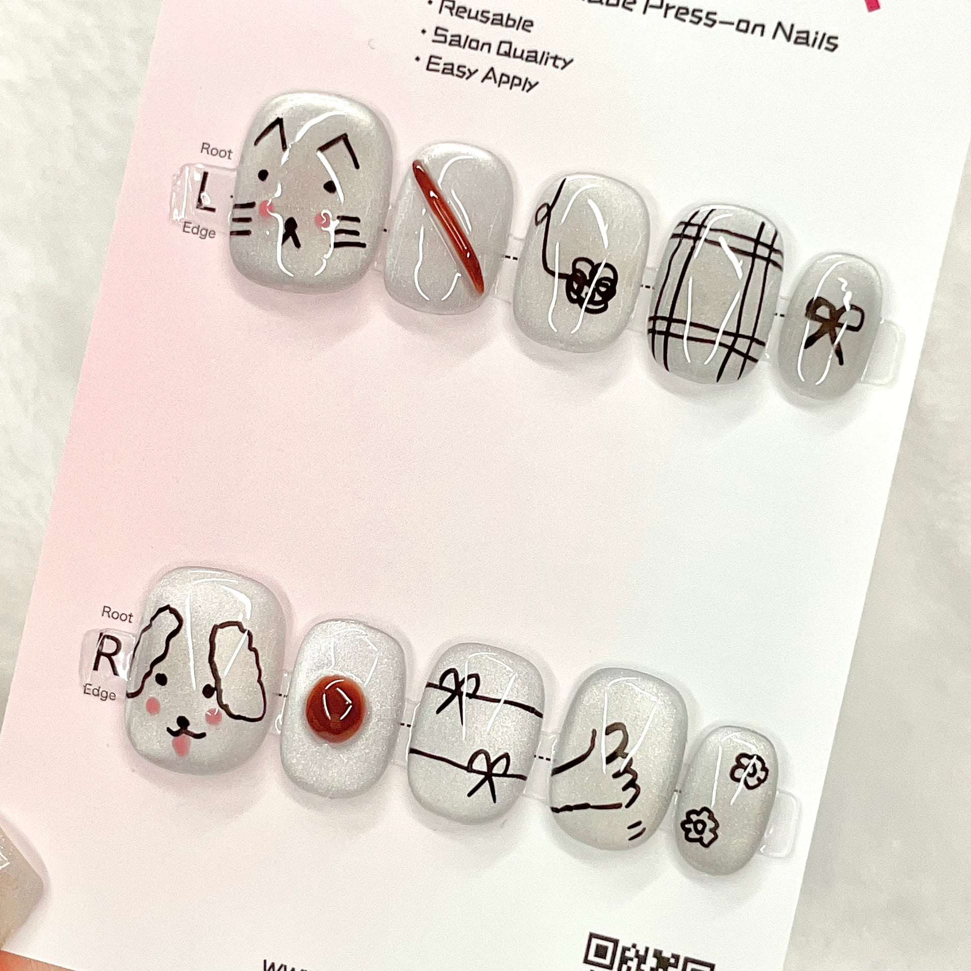 Luxurious Short Cat eye Pink Press-On Nail Art.